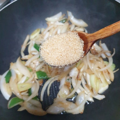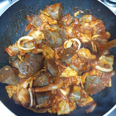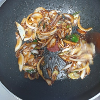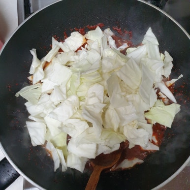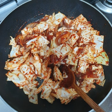 수분을 날려 준 후 한 번 뒤집어 볶아줍니다.