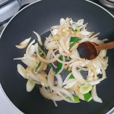 양파와 대파를 넣어주고 2~3분 둔 후에