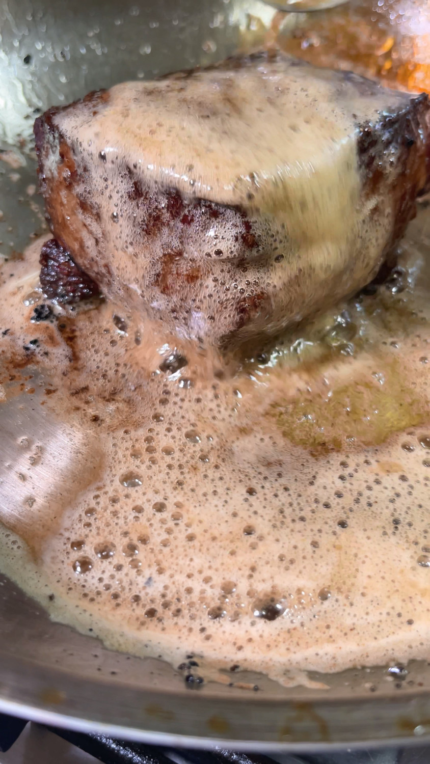 (*한번 뒤집은 뒤 버터를 넣고 끼얹어 가며 익히면 풍미가 더욱 살아난답니다~)