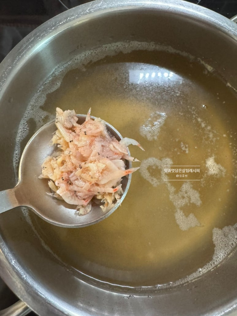 새우젓 2/3큰술 넣어주는데요. 건더기 없이 국물만 활용해도 좋아요.