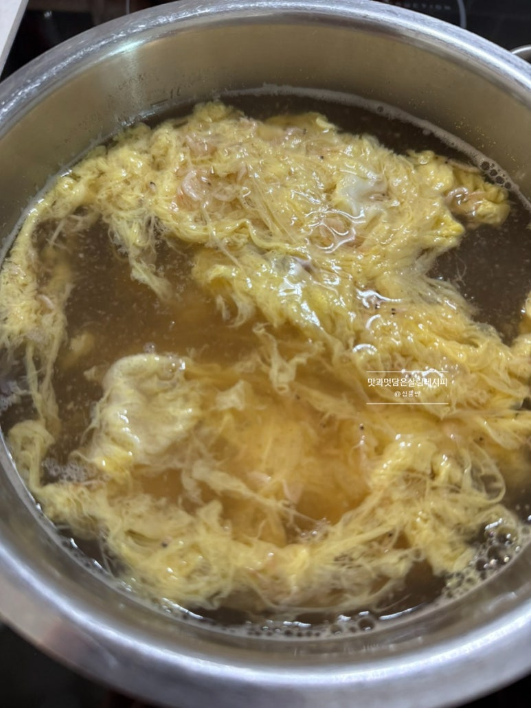 푼 달걀 넣기 전에 보글보글 센 불로 끓여줍니다.