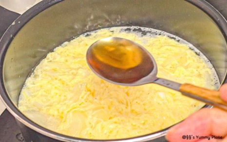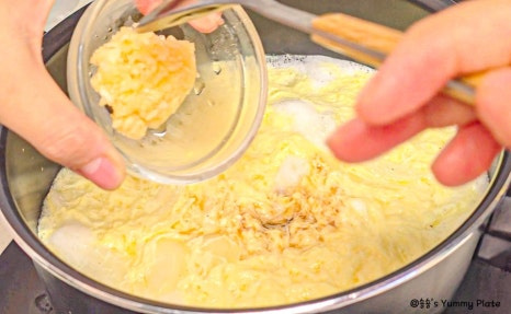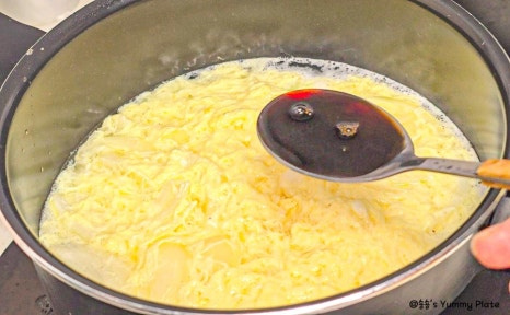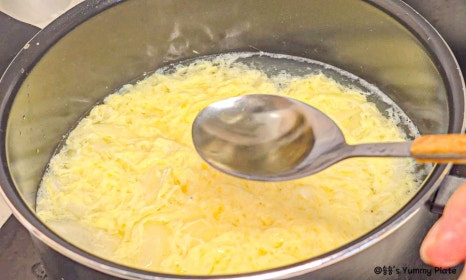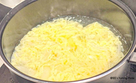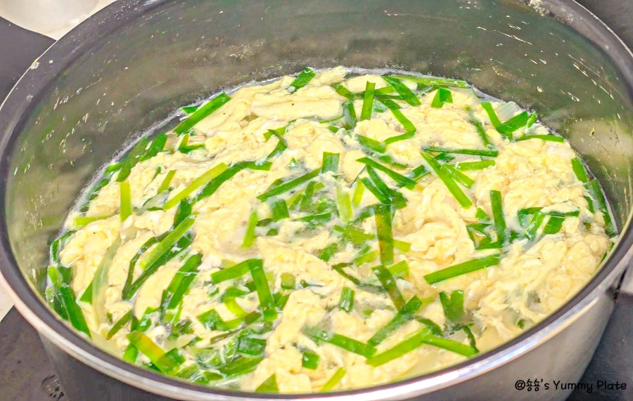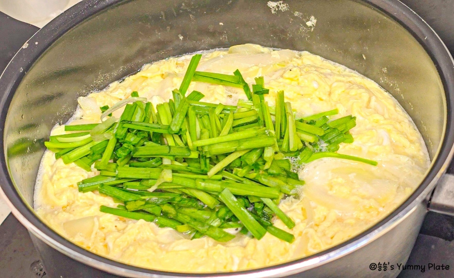계란물을 부어줄 때 숟가락으로 풀어주면서 넣어줘야 뭉침 없이 부드러워져요.