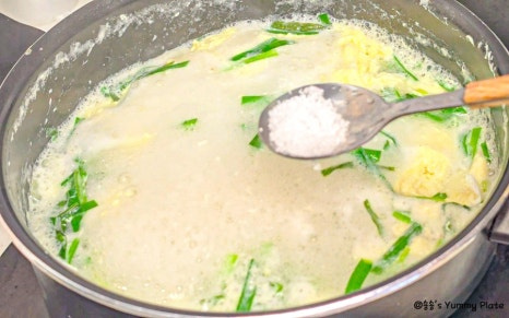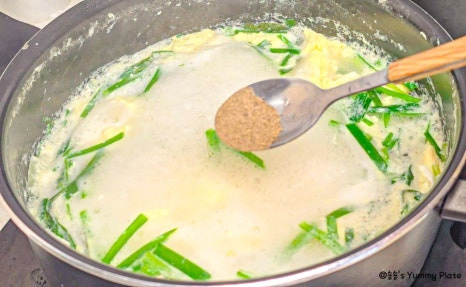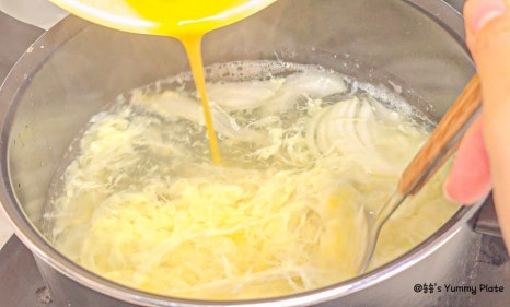 계란물을 잘 풀어줘야 부드러운 계란국을 만들 수 있답니다.