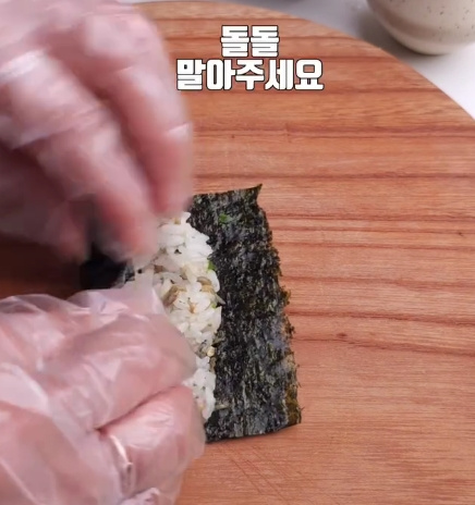 끝 부분에 물을 살짝 바르고 말아주면 안 풀려요.