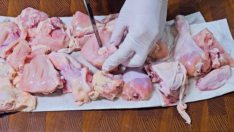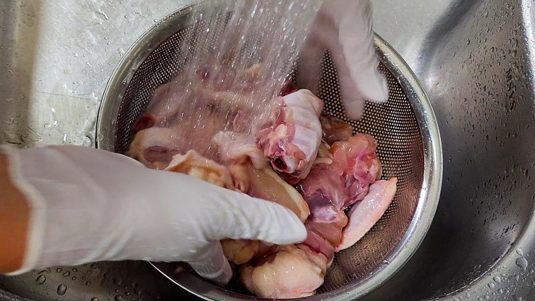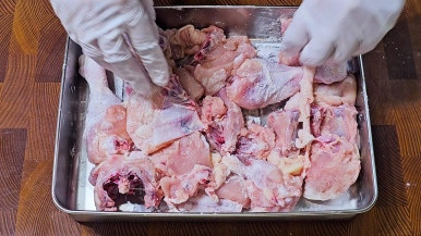※ 잡내를 유발할 수 있는 내장과 불순물, 잔뼈를 잘 떼주세요! ※ 남아있는 물기를 잘 닦아줘야 잡내가 안 납니다! ※ 닭기름을 사용하기 때문에 기름 부분은 남겨주세요!