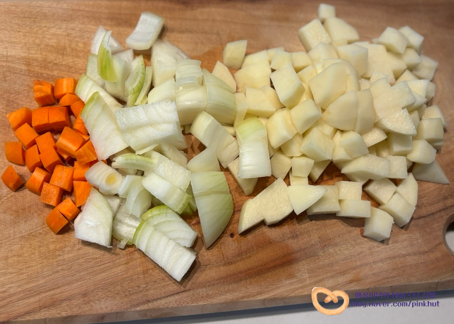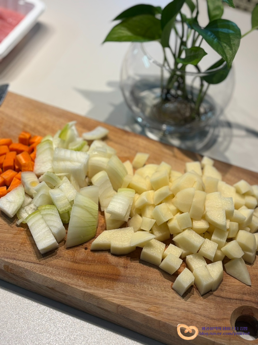 당근은 감자, 양파보다는 조금 더 작게 썰어주시면 아이들도 부담 없이 잘 먹을 수 있어요.