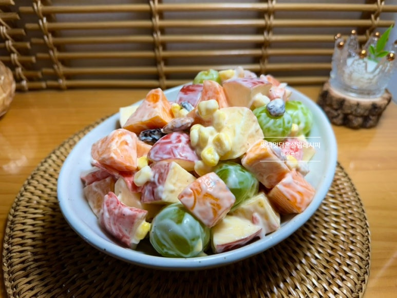 추억의 간식 레시피 들고 왔어요. 색감 다양한 제철 과일이 이것저것 듬뿍 있길래 옛날 사라다 생각이 딱 나더라고요. 딱 정해진 재료가 아니라 취향에 맞는 다양한 재료를 활용해도 좋은 메뉴랍니다.