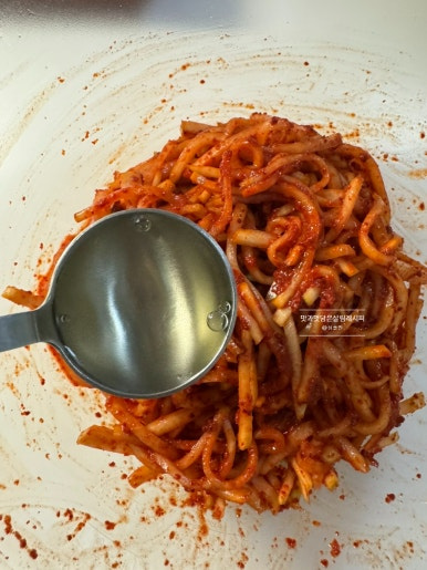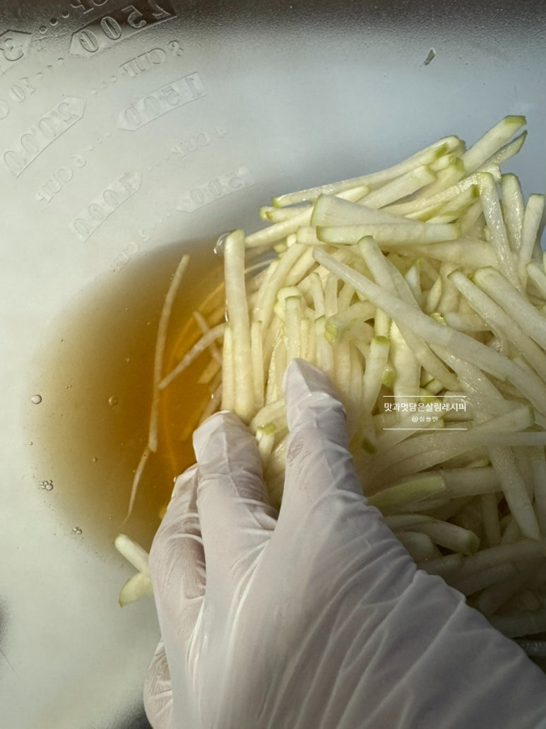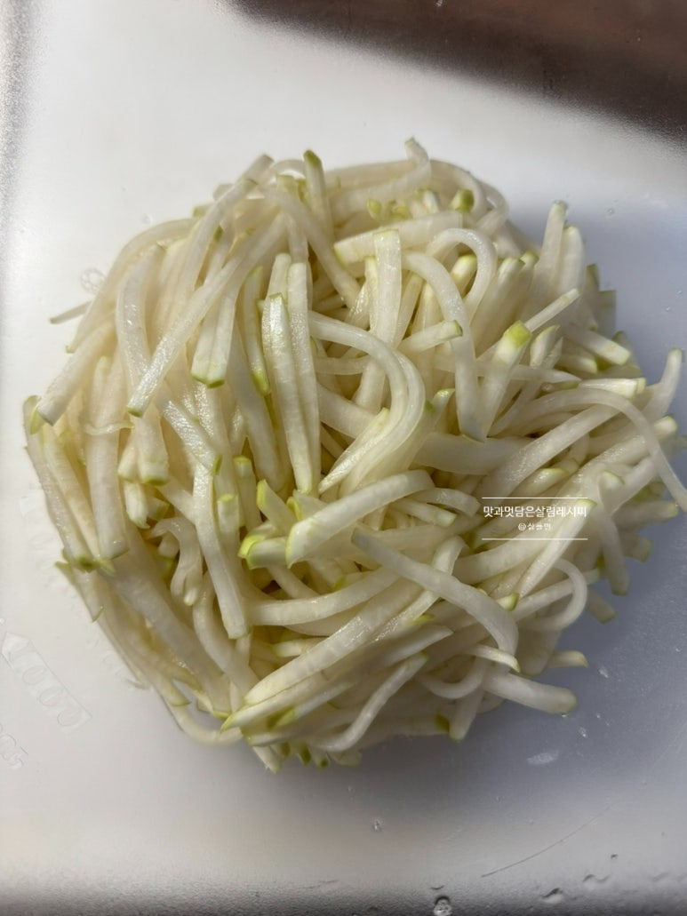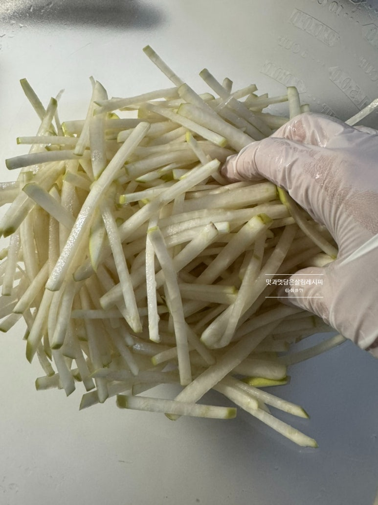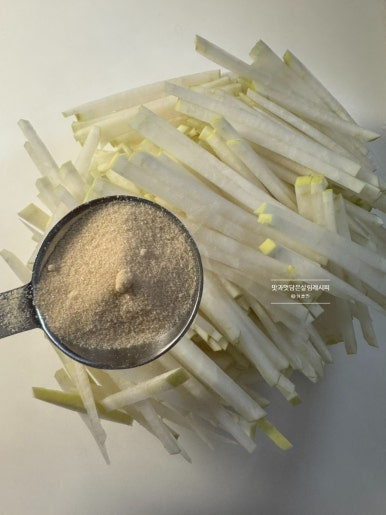 잠깐의 절임 시간으로 무가 구부러지면서 정돈되었어요. ^^