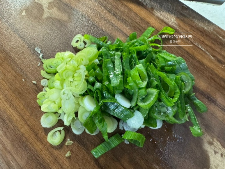 양념 재료와 함께 버무릴 대파도 1대가량 잘게 썰어줍니다.