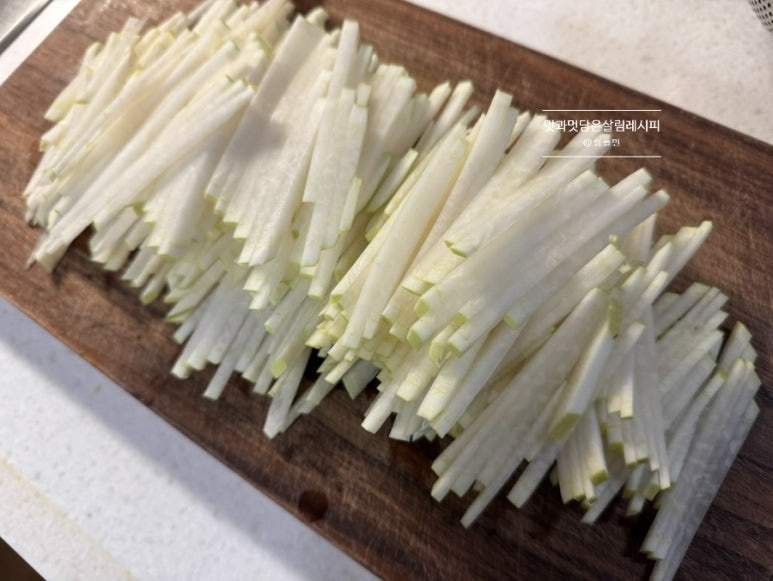 채칼을 사용해도 좋고요. 직접 썰어도 좋습니다. 양이 많지 않아 저는 직접 썰어주었어요.