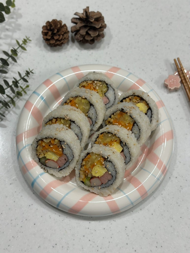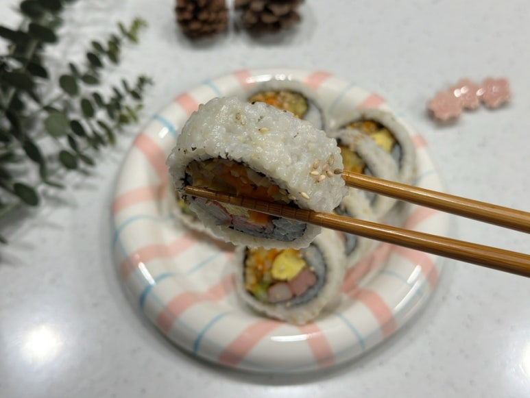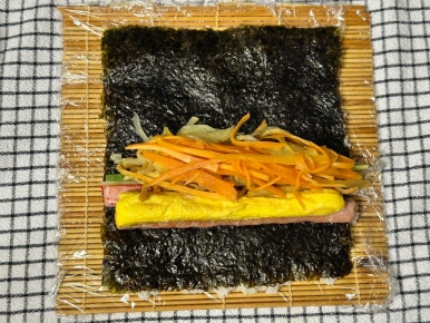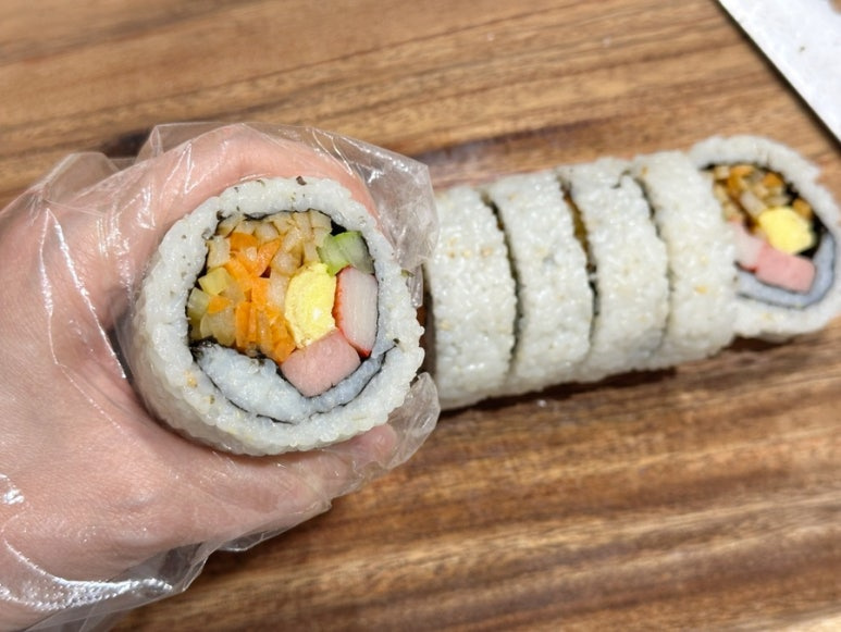 저희 집 시그니쳐 메뉴 중 하나인 김밥 이번에는 누드김밥으로 만들어보았어요. 김을 뒤집어서 돌돌 말아주면 밥이 밖으로 보이게 완성되는 이색김밥! 부드러운 밥이 느껴지는 맛으로 모양도 귀여운 누드김밥이랍니다. 김밥을 랩으로 감싸준 뒤 만들면 밥알이 들러붙지 않고 깔끔하게 만들 수 있는 누드김밥 만드는 법을 남겨 보도록 할게요 :)