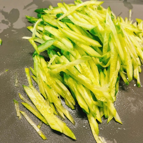 오이, 파프리카는 채썰어서 준비해주세요