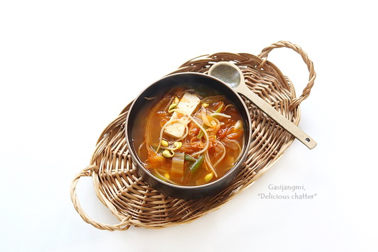 김치 국물은 체에 한번 걸러 넣어주세요. 물론, 그대로 넣어줘도 무방한데 좀더 깔끔한 국물을 위해서...