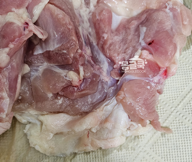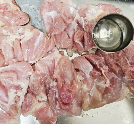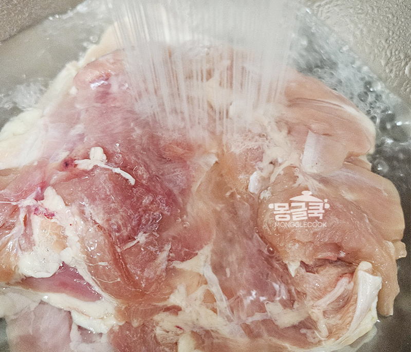 먼저 닭다리살은 찬물에 헹궈 물기를 제거해 주세요.