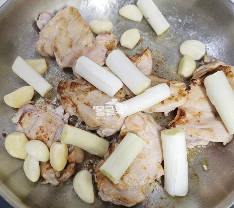 닭에서 나온 기름에 구워진 마늘과 대파는 은은한 단맛이 배어 정말 맛있어요.