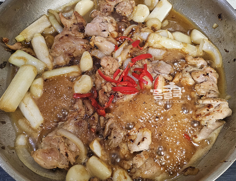 중약불에서 숟가락으로 소스를 끼얹어가며 3~5분 정도 졸여주면