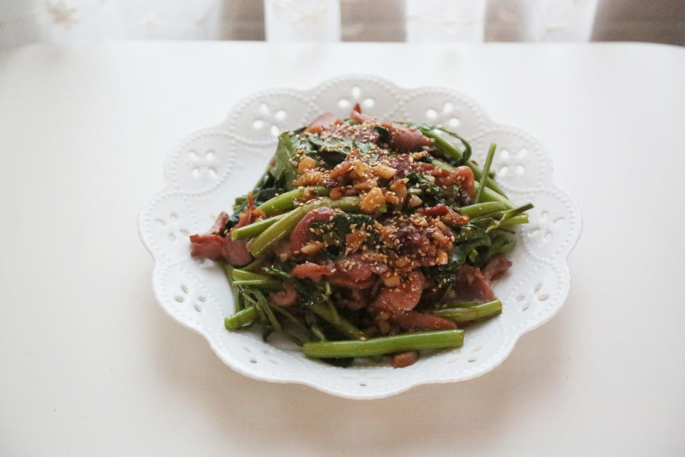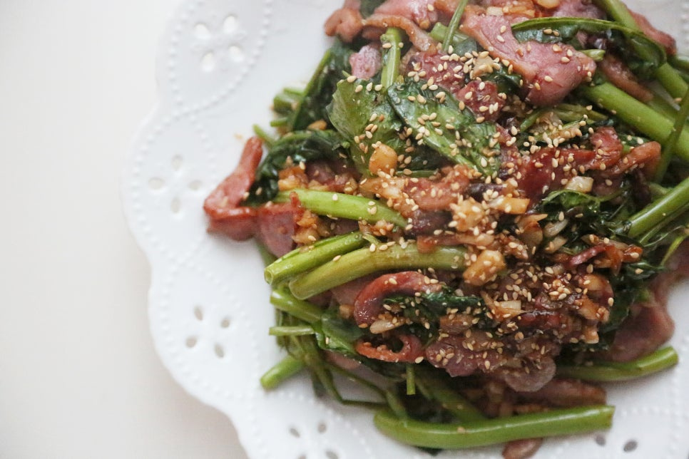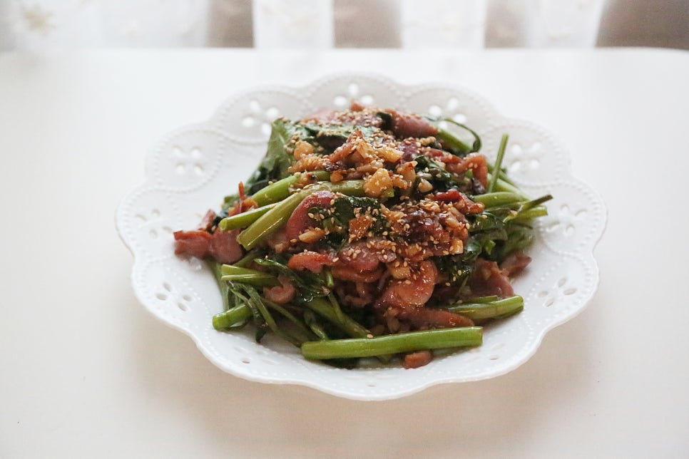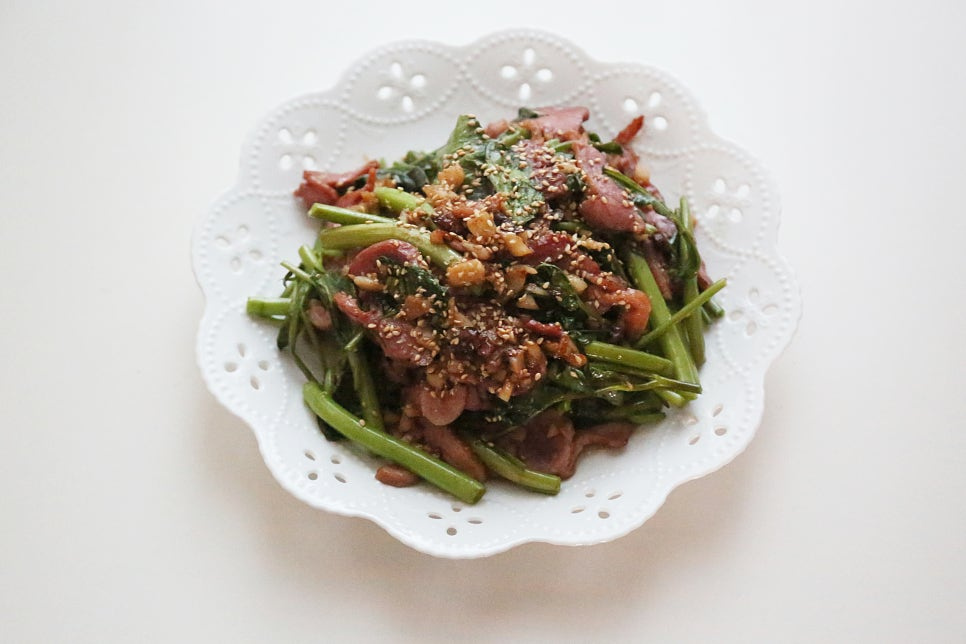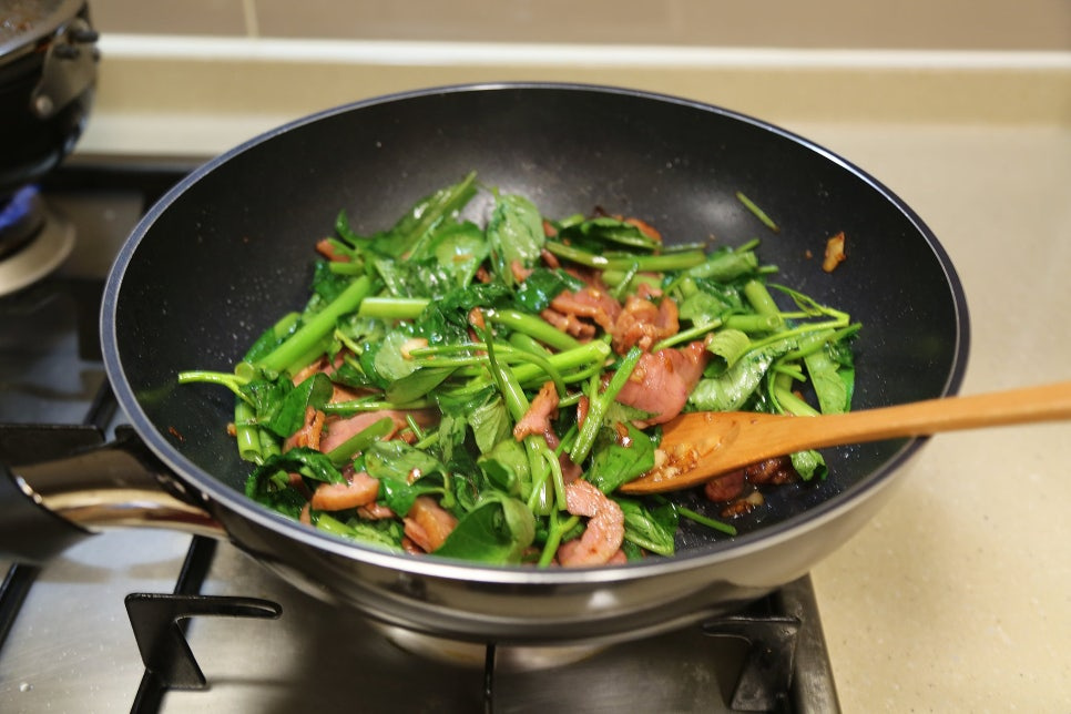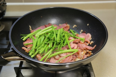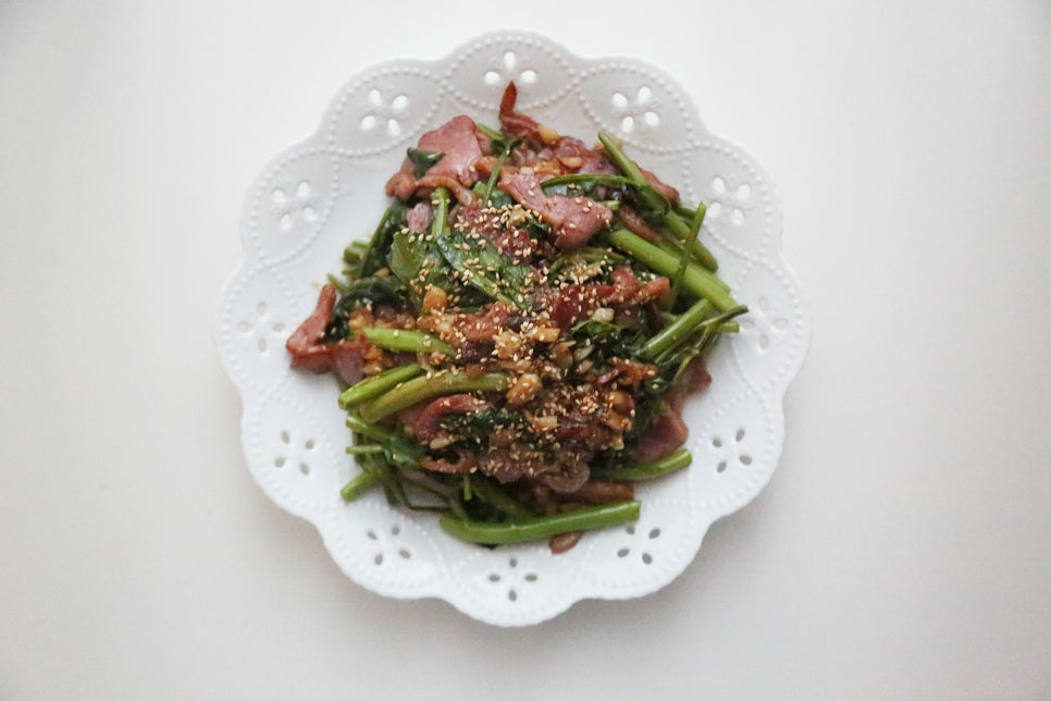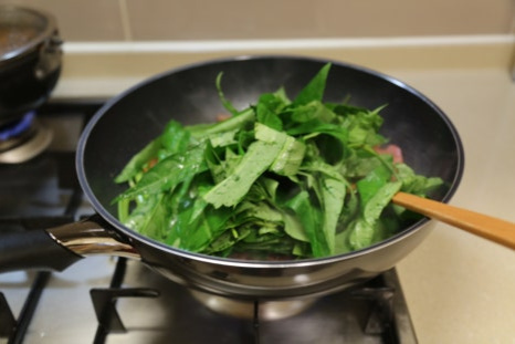 공심채잎은 열에 약해 살짝 양념이 들정도로 불을 끈 후 잔열에 익혀준다