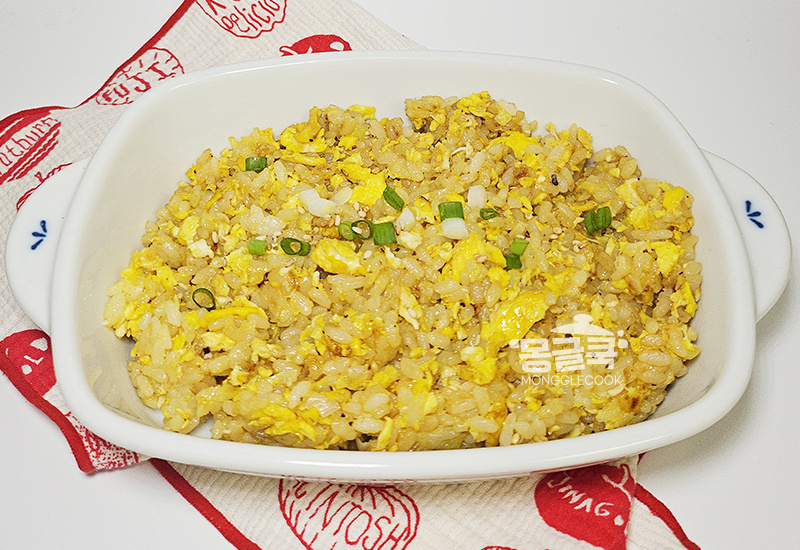 저는 밥 양이 1.5그릇 정도 돼서 계란 양이 많아요.
