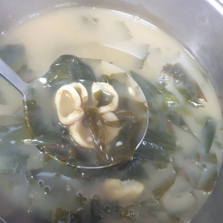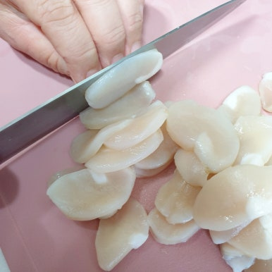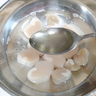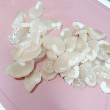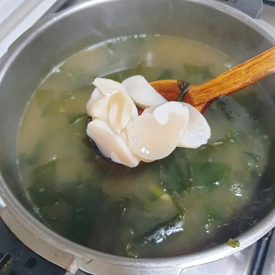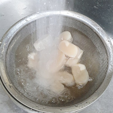 끓여야지 관자가 질기지 않고 부드럽습니다.