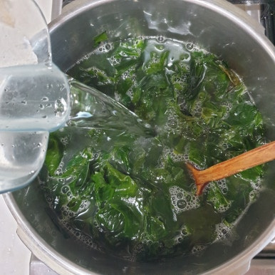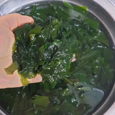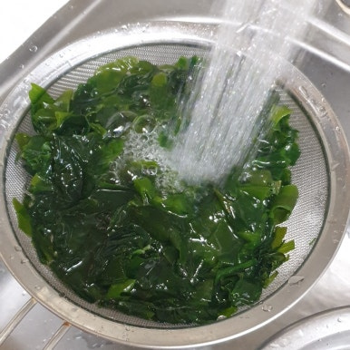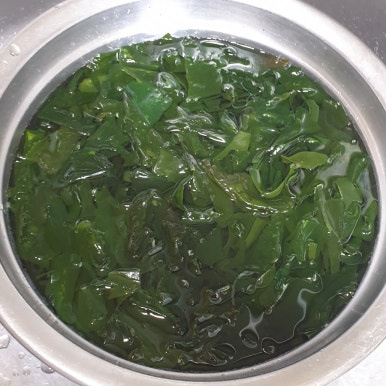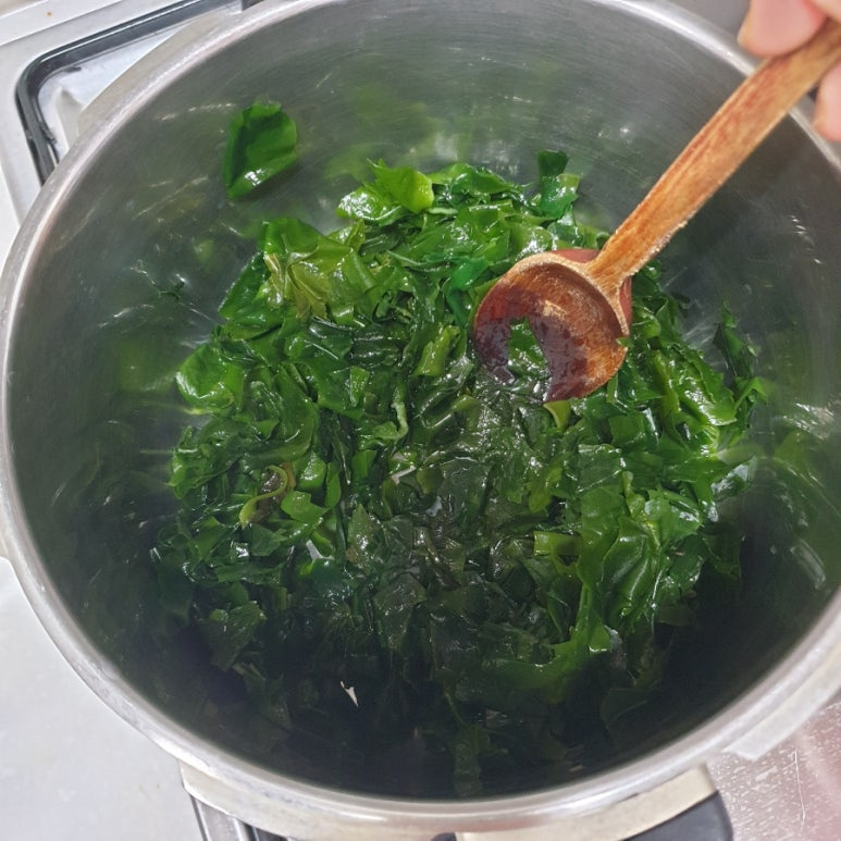 반대로 전복은 미역과 함께 참기름에 볶습니다