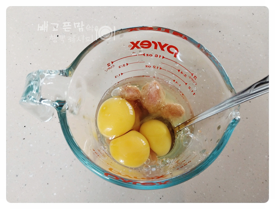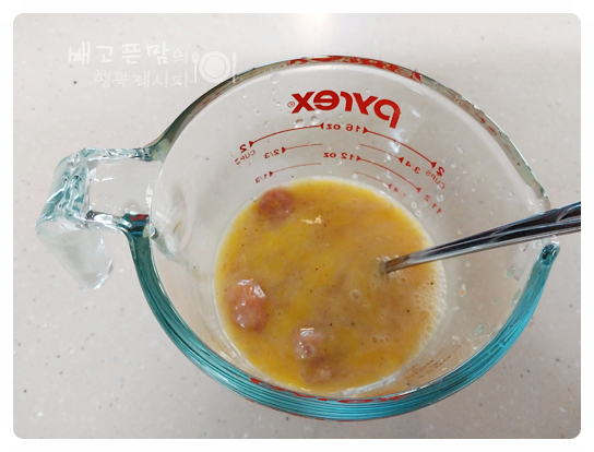 계란 3개를 넣고 고르게 섞어 주었습니다.