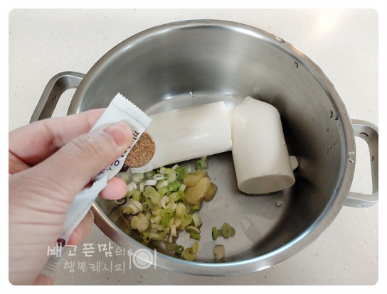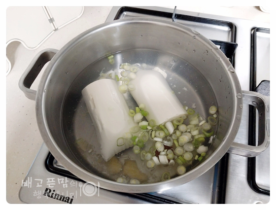 대파 흰 부분 1 대, 코인 육수 1 개, 물 3+1/2 컵