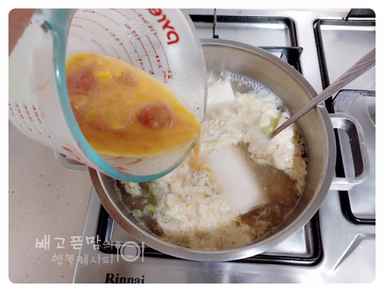 국물이 팔팔 끓어 오르면 준비한 명란 계란을 넣고
