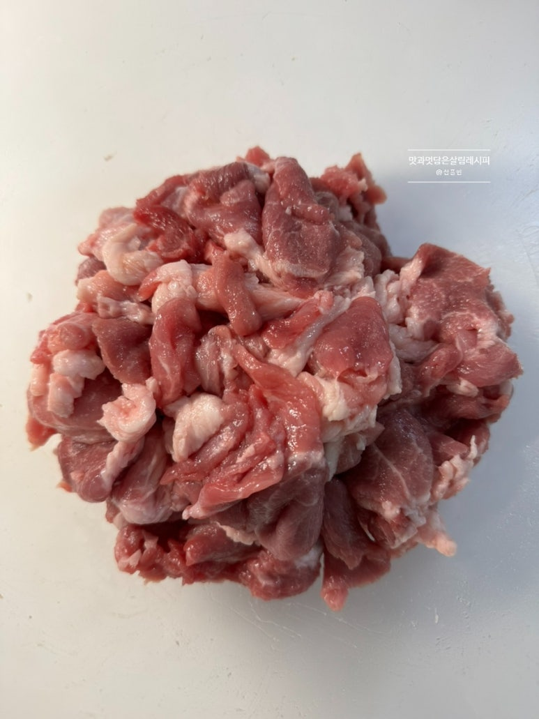 말기 전 밥반찬으로도 너무 잘 먹은 볶음이에요. 앞다리살을 활용하면 기름기 없이 단백하고 쫄깃함 가득 살려줄 수 있고요. 평소 볶음으로 그냥 먹을 땐 삼겹살이나 목살로 볶아도 부드러움까지 살려 맛있게 만들 수 있으니 다양한 고기 부위 활용해 보세요.