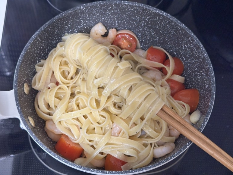집에서 간단하게 혼밥으로 먹기 좋은 간단 파스타 요리를 만들었어요. 새우와 토마토를 올리브오일과 함께 파스타면과 어우러지게 볶아서 신선한 루꼴라를 듬뿍 얹어서 먹으니 향과 풍미가 입안 가득! 혼밥으로 만들어 먹고 넘 맛있어서 새우 좋아하는 딸을 위해 또 만들어서 먹은 간단 메뉴랍니다. 파스타면을 삶은 다음 올리브오일과 재료를 넣고 휘리릭 볶아내면 완성되는 집에서 즐기는 홈스토랑 메뉴로 새우 루꼴라 파스타를 만들어 볼게요 :)