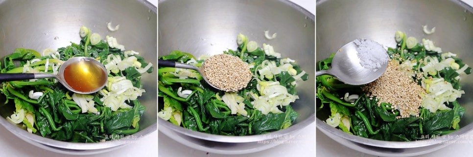 참기름과 통깨를 넣은 후 소금 0.1스푼 넣고