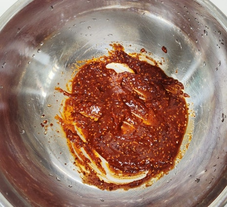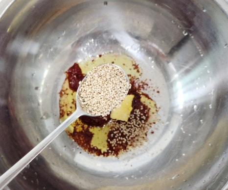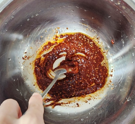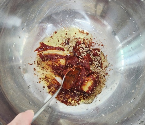 마지막으로 참기름 1T와 통깨를 1T를 넣어주세요. 그리고 양념장을 골고루 잘 섞어 주세요.