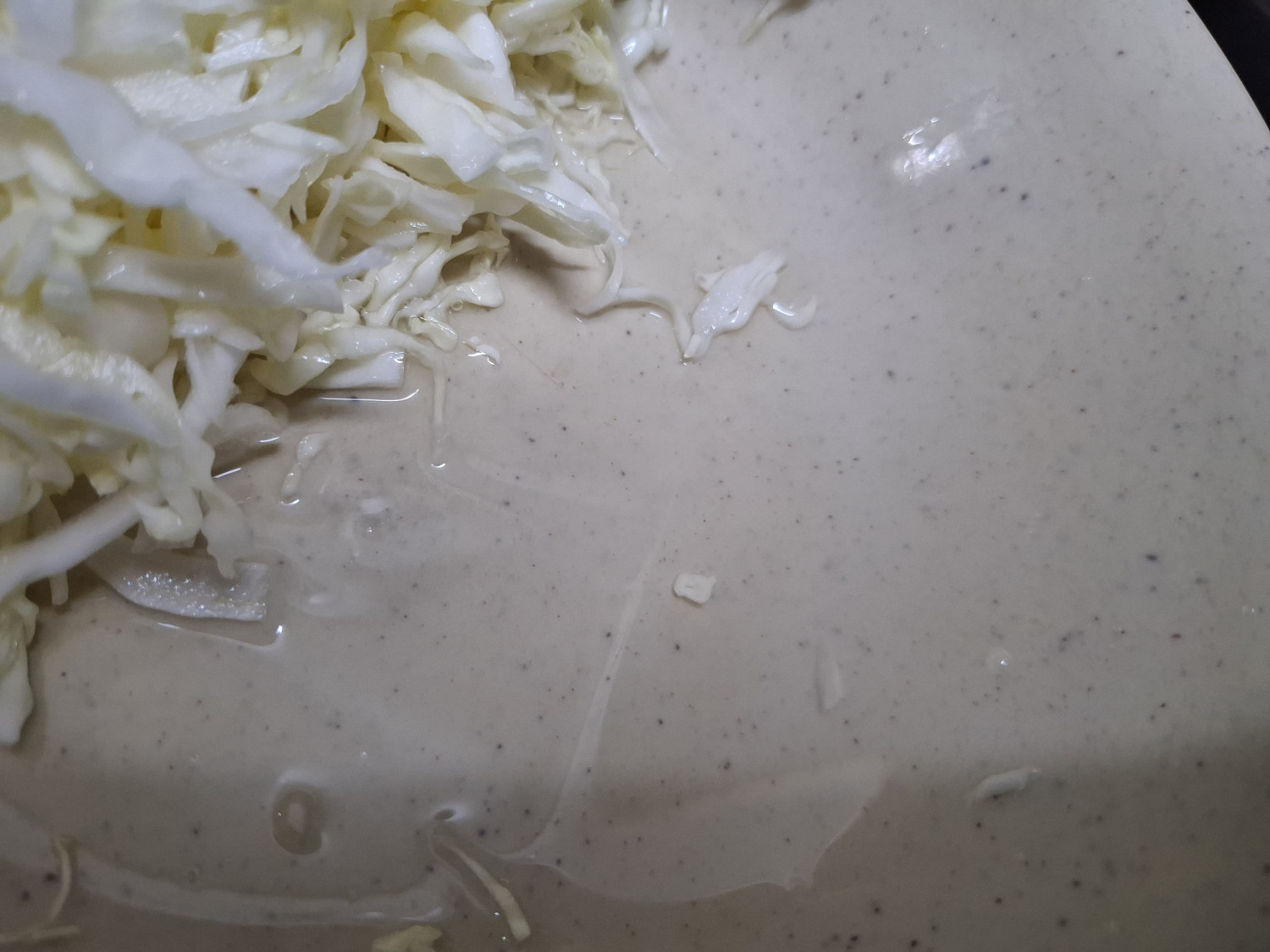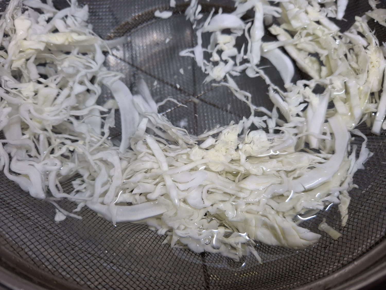 10분이 지나면 이렇게 양배추에서 물이 나와요.