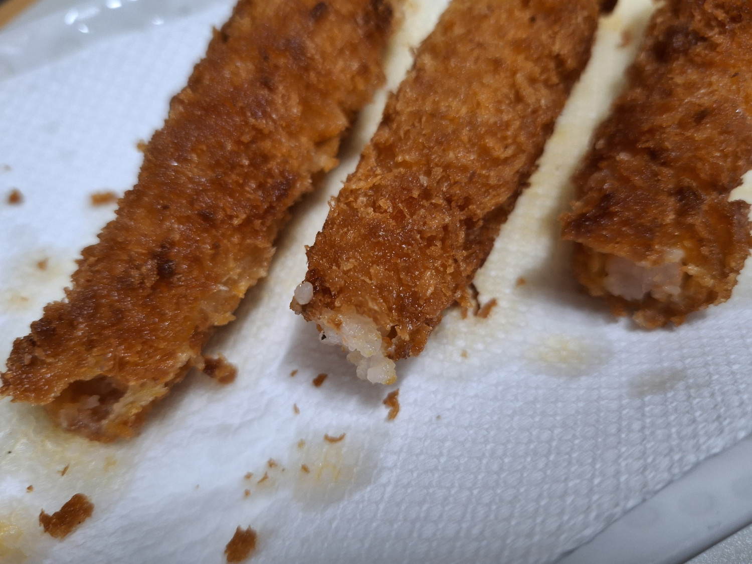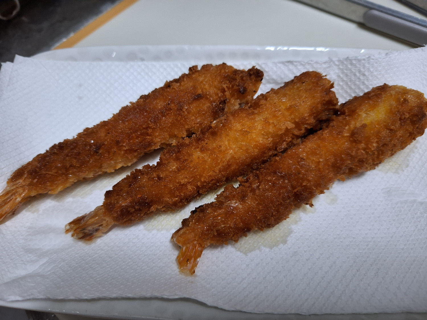 다 튀겨진 새우는 키친타올에 올려서 기름기를 제거해줍니다.
