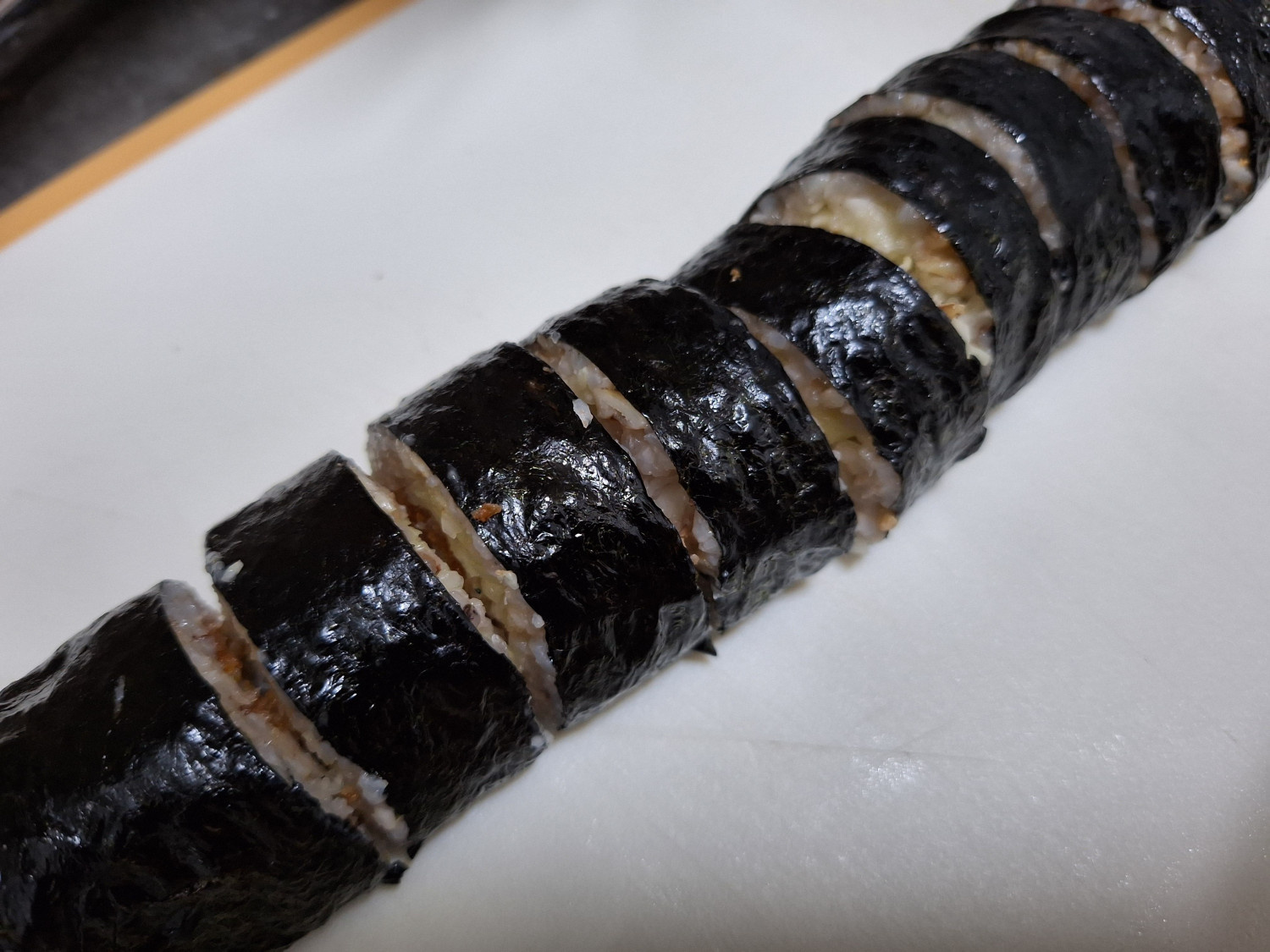 그리고 망설이지 말고 김밥을 밥있는 부분까지만