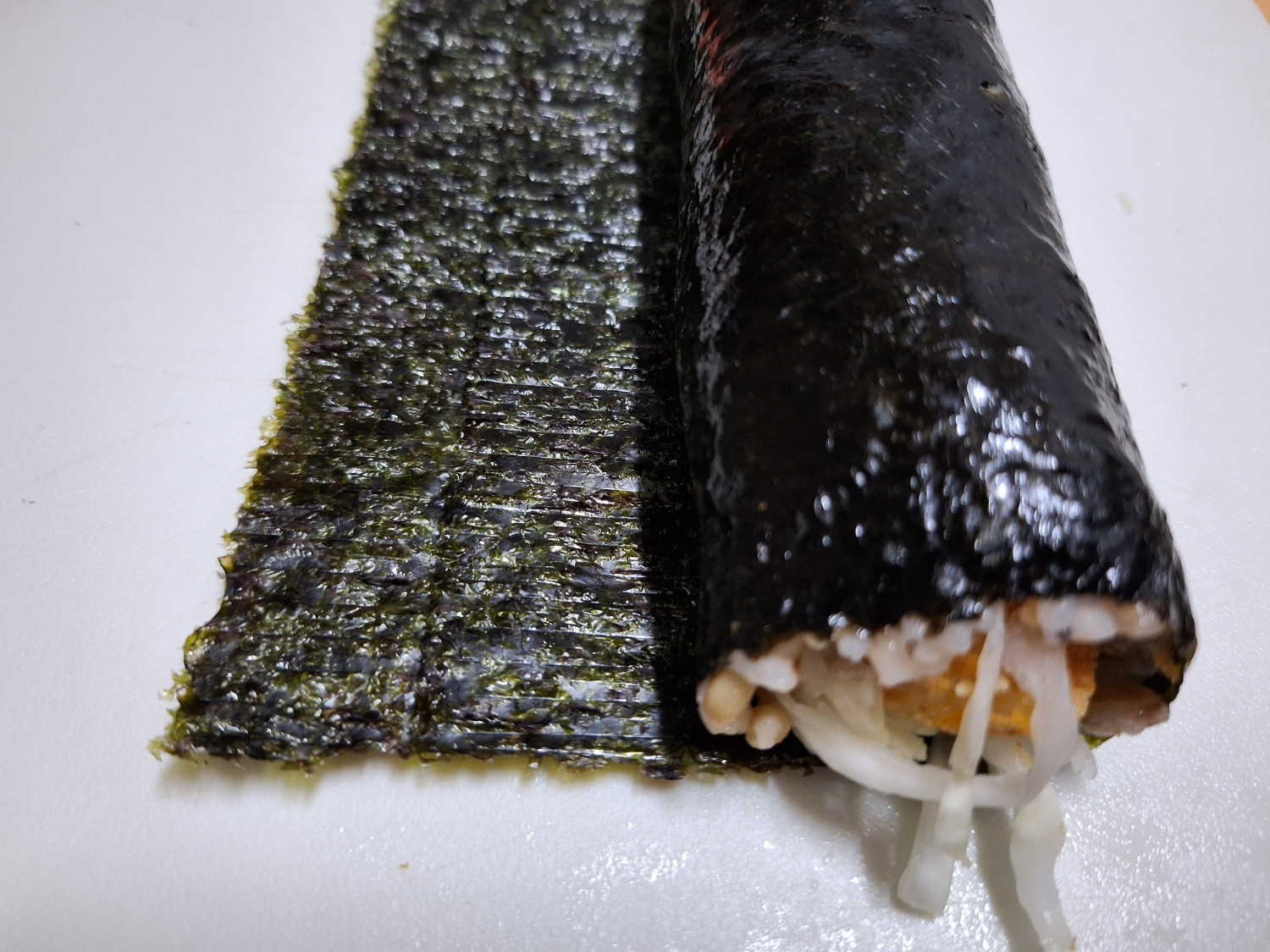김 끝부분에는 물을 묻혀주셔도 됩니다.