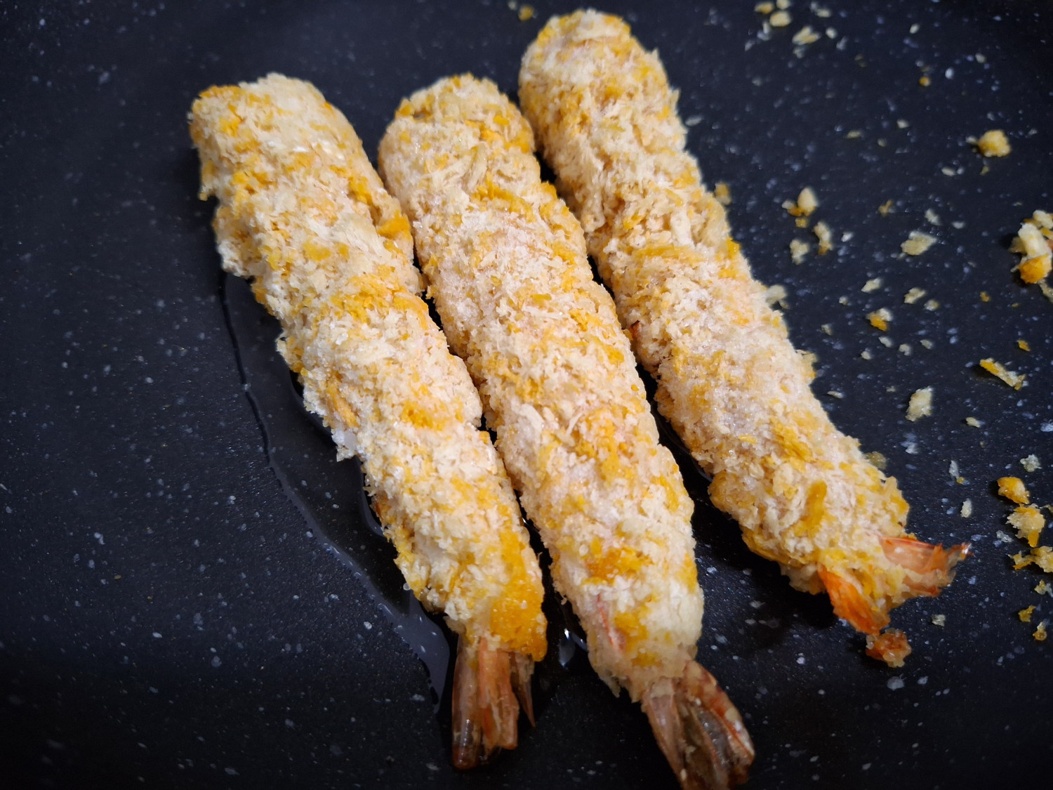 팬에 새우튀김 밑부분이 잠길정도로만