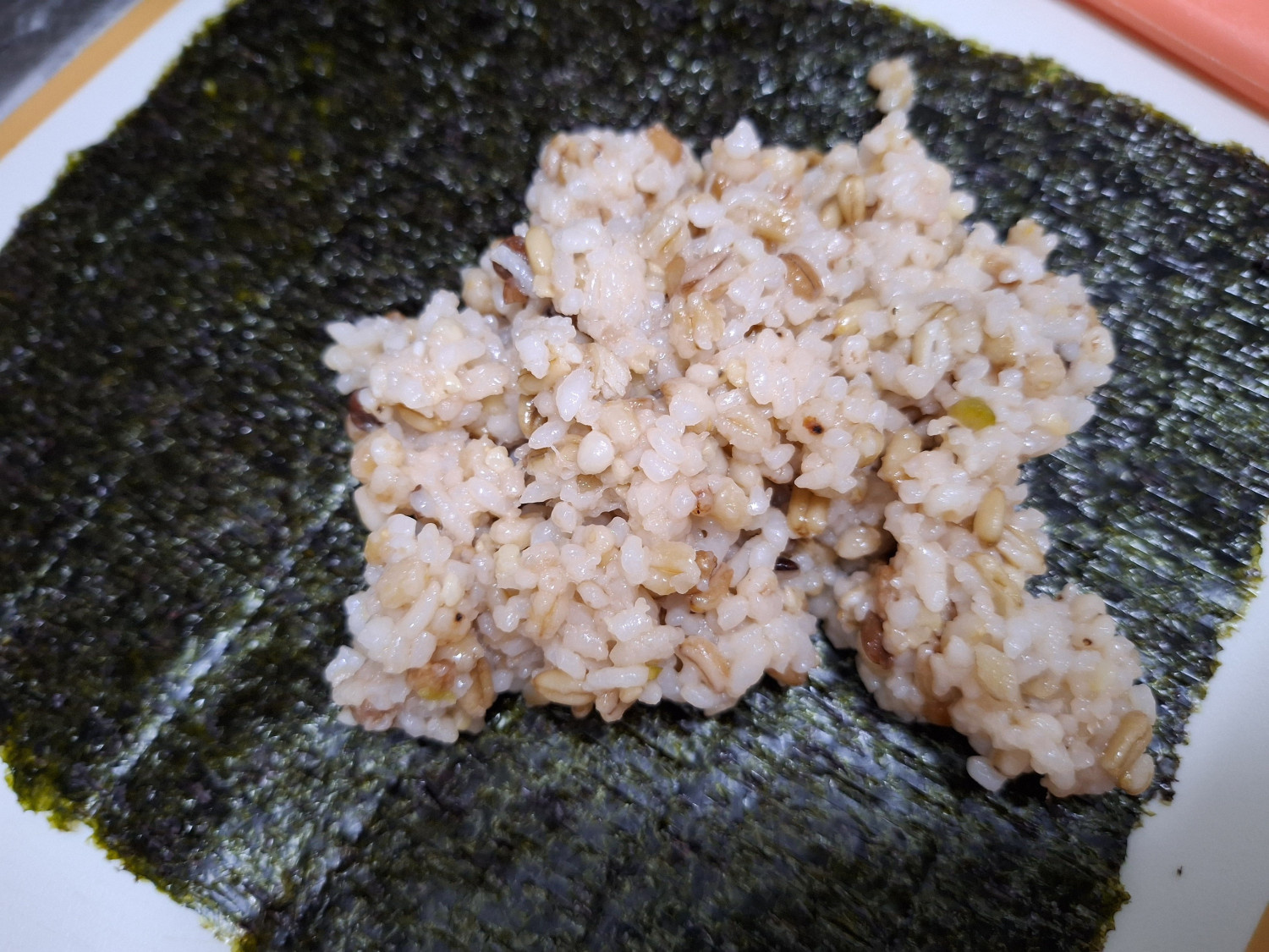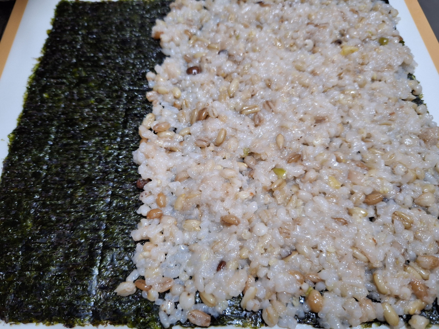 먼저 김밥용 김을 평평한 곳에 놔주시는데요.