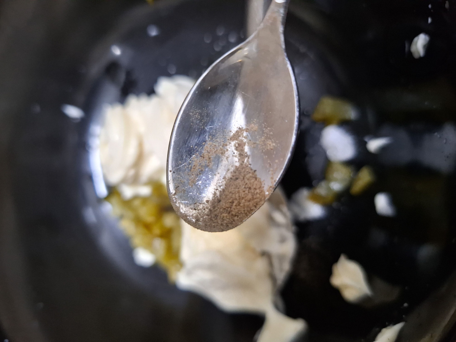 후추 2꼬집도 넣고 달걀을 으깨면서
