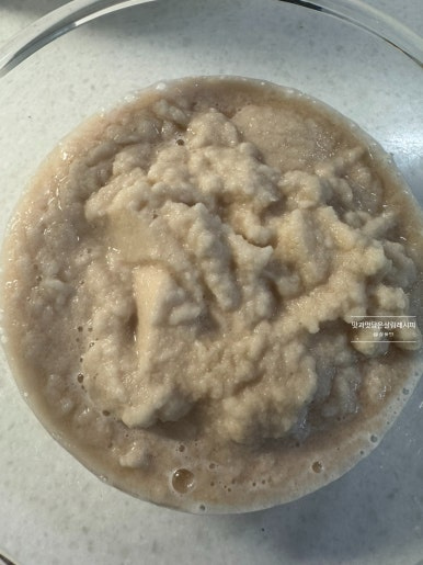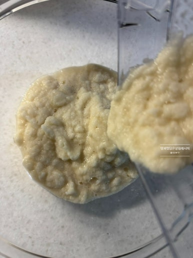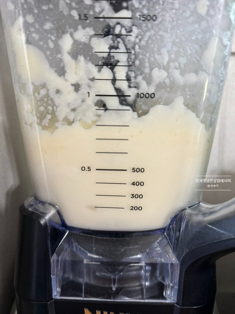 곱게 갈아줍니다. 대략 1분 30초 갈아주니 덩어리 없이 부드럽게 잘 갈아졌어요.