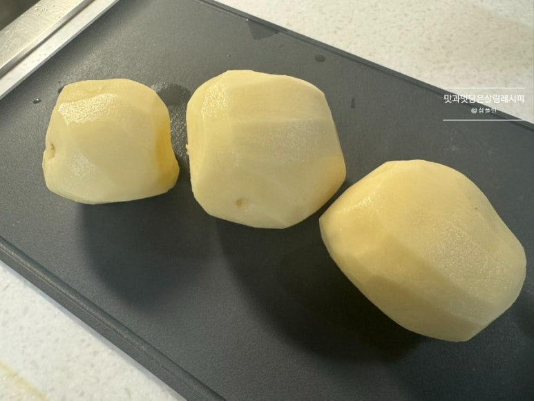 특히나 둘째가 너무나 좋아하는 감자 간식 메뉴인지라 하교 시간 맞춰 빠르게 만들어 보았어요. 껍질을 깎아낸 뒤 휘리릭 갈아내기만 하면 뚝딱 완성입니다.
