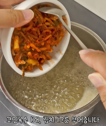 물이 끓으면 코인육수 1개를 넣어주세요.