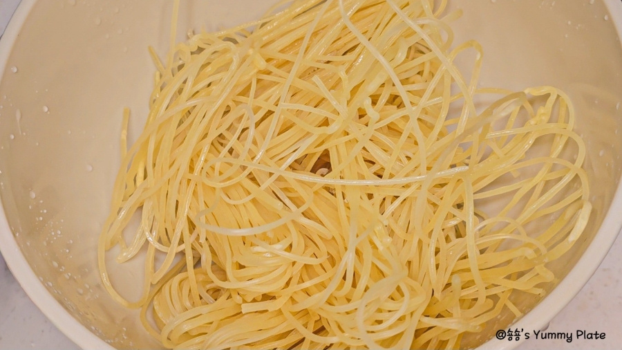삶을 때 면이 엉키지 않고 한올 한올 탱탱하게 익어서 식감이 훨씬 좋아요!