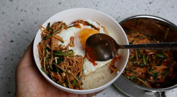 팽이버섯 사놓으면 냉장고에서 자고 있는 경우가 많죠.  분명히 쓸려고 샀는데 어느날 보면 몇일째 냉장고에서 자리만 차지하고 있는 팽이버섯.  이 레시피 알아두면 팽이버섯이 남아나는 날이 없습니다.  맛있는 반찬으로 간편한 한끼 필요할때 덮밥으로 활용하면 정말 맛있어요~ 꼭 활용해보세요.