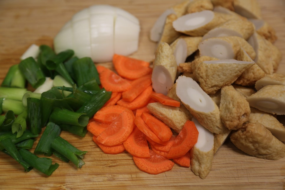 봉어묵(10cm) 10개, 양파 1/2개, 당근 1/4개, 대파 1대