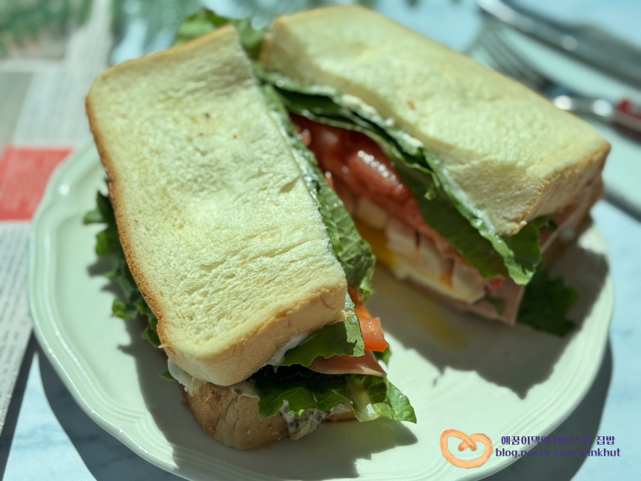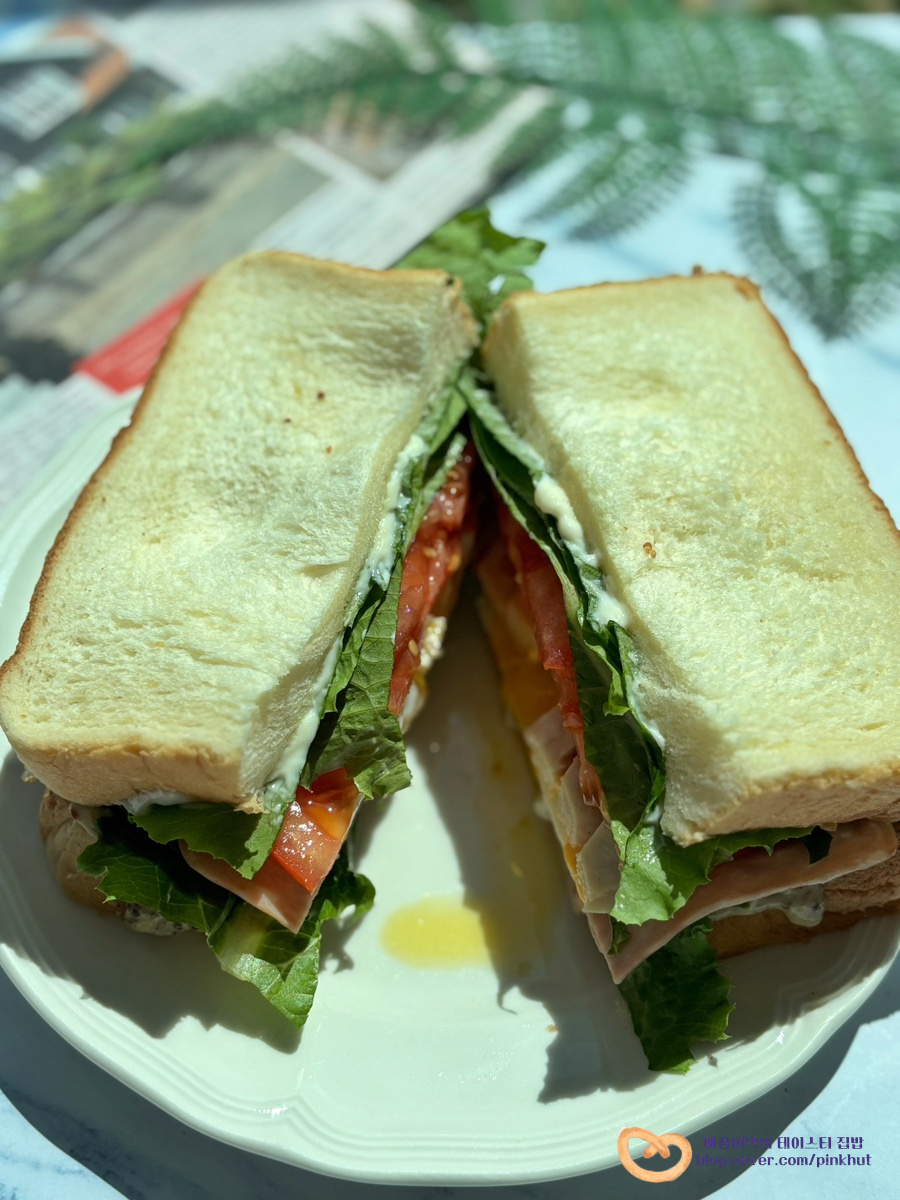 류수영 클럽 샌드위치는 햄을 굽지 않고 사용하셨지만 팬에 살짝 구워주시면 풍미가 더 좋아져요.