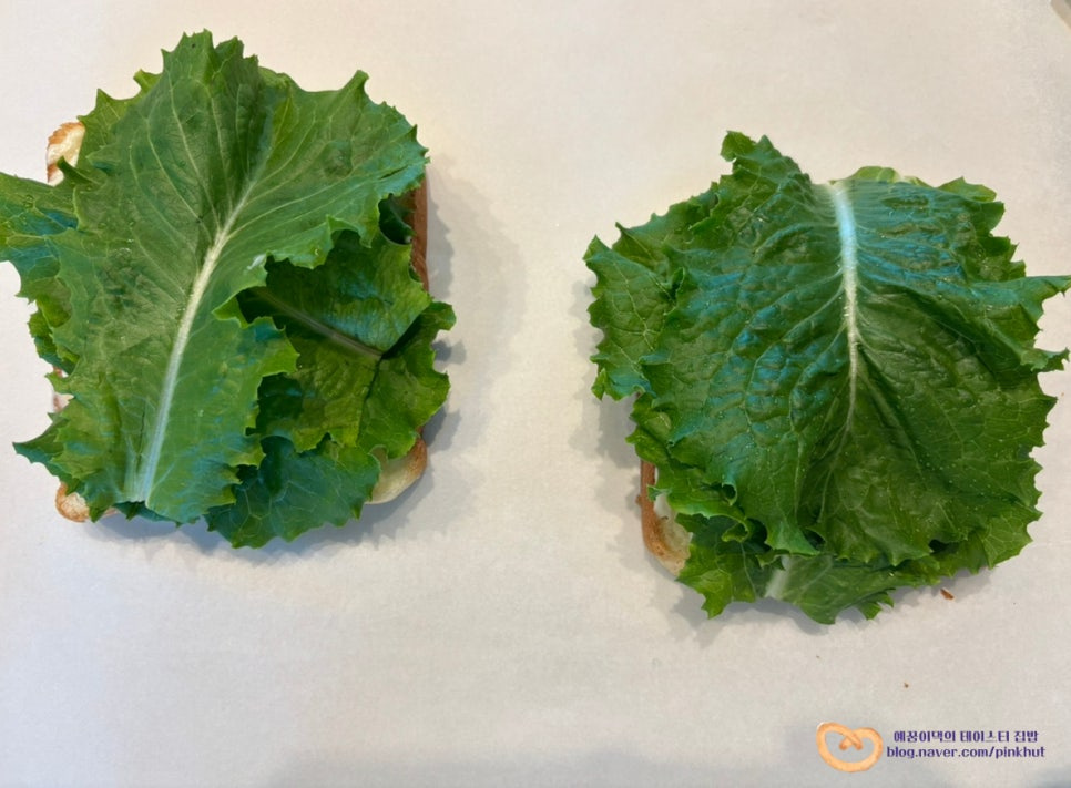 소스 위에 청상추를 3장씩 올려줍니다