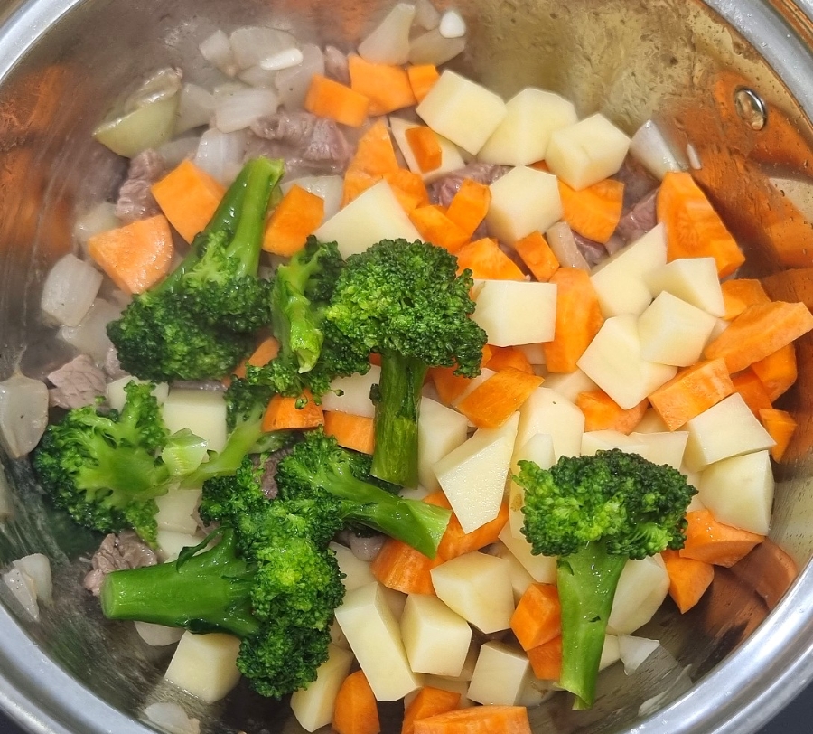 감자, 당근, 브로콜리 넣고
