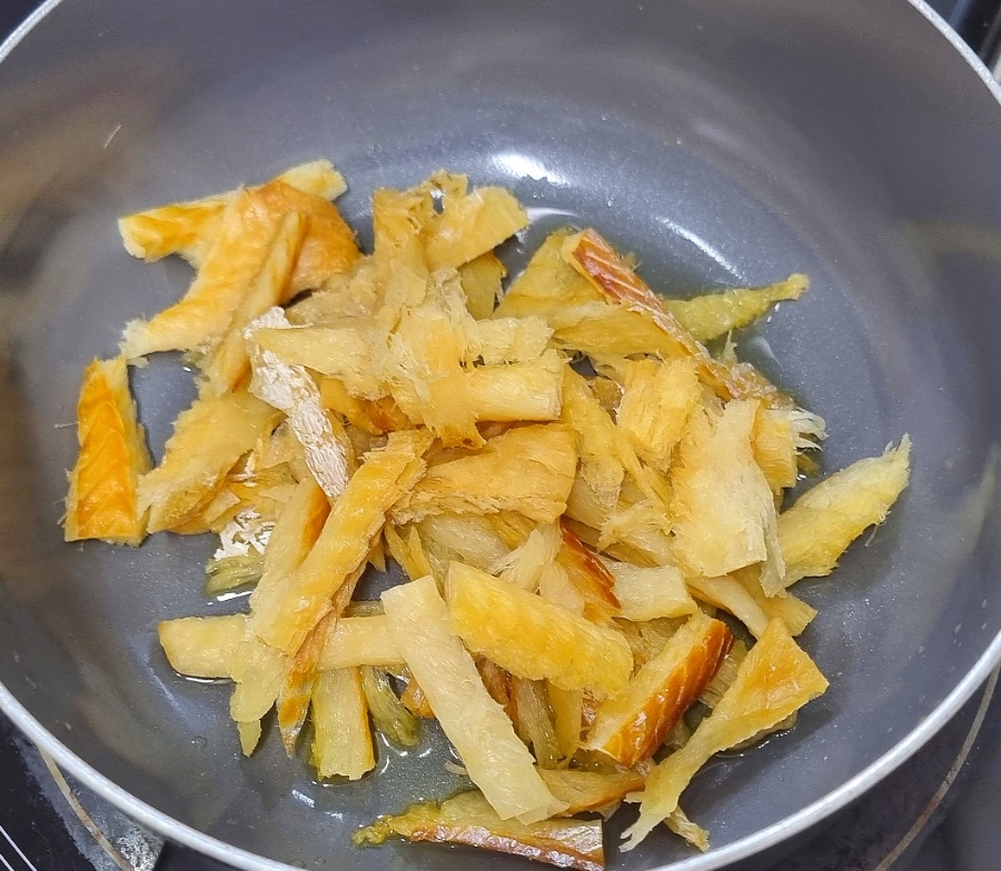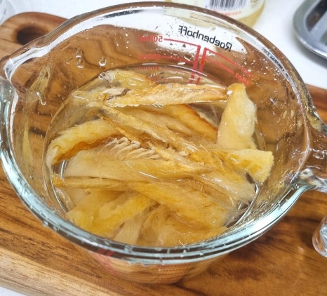 손질황태채 40g에 물을 넣고