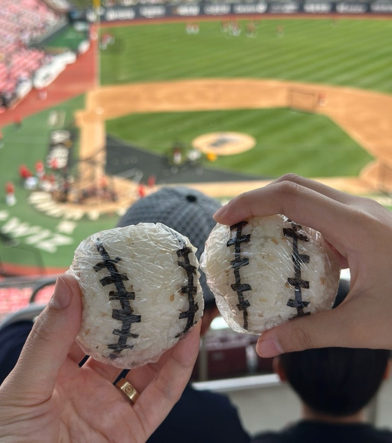 SNS에서 본 야구공 모양의 주먹밥을 만드는 레시피를 보고 아이들이 좋아할 것 같아서 만들었는데 역시나 인기만점이었답니다ㅎㅎ 주먹밥 속 재료는 취향대로 넣고 동그랗게 야구공만한 크기로 뭉쳐준 다음 김을 잘라서 모양대로 만들어주면 귀여운 야구공 주먹밥이 되더라고요. 은근 든든하고 맛있게 먹을 수 있는 야구장 직관하면서 먹기 좋은 간식으로 SNS 레시피의 야구공 주먹밥을 만들어 보도록 할게요 :)