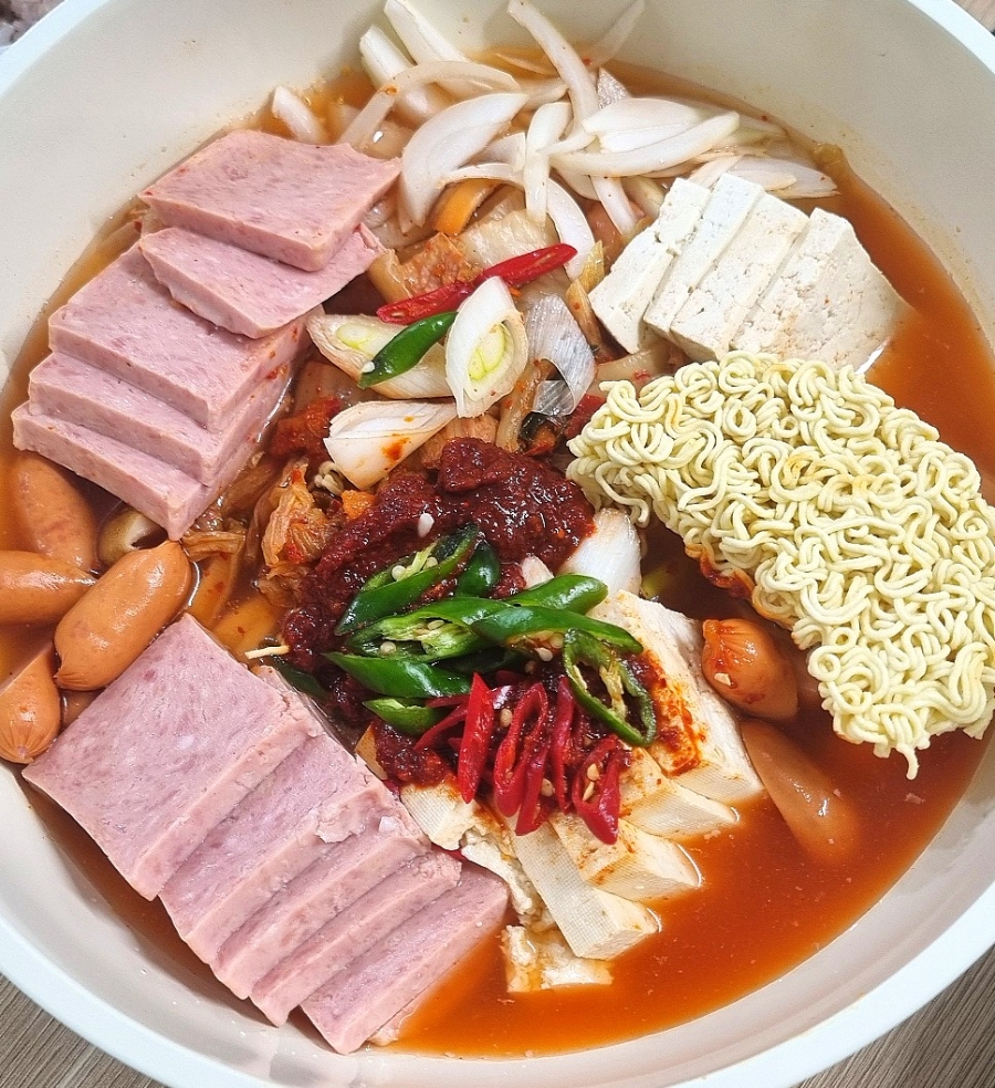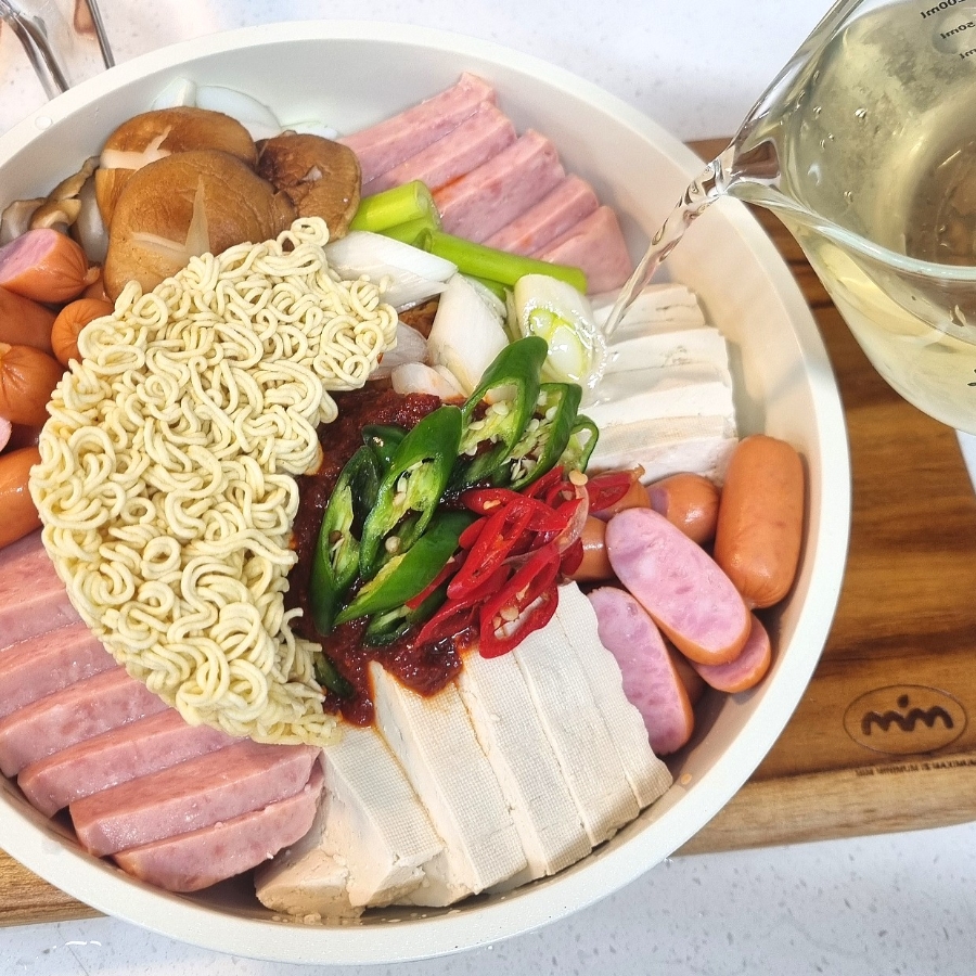 사골곰탕 부대찌개에 멸치다시마육수 넣고